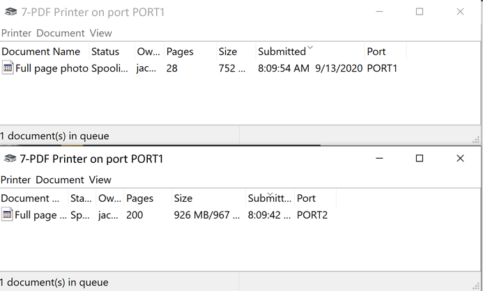 Another optimization of the printing speed is to change the spooler options to Start printing after last page is spooled. This helps if one print job is taking a long time to finish printing. Usually, the spooling is faster than the printing for the virtual printer.