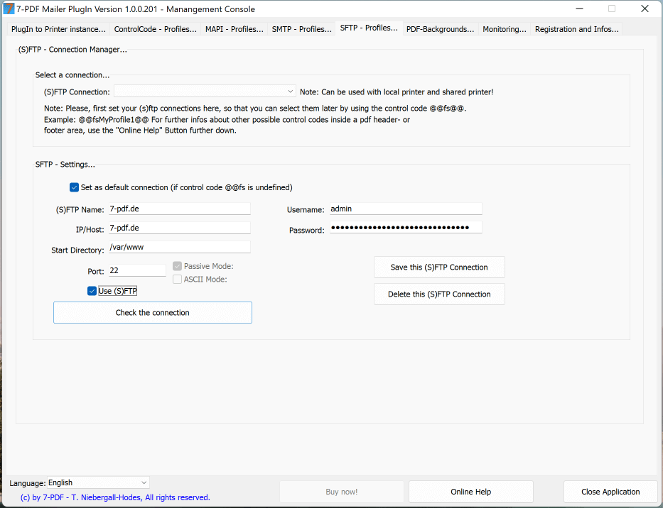 - Setting up (s)FTP connections in the TAB "SFTP-Profiles..."